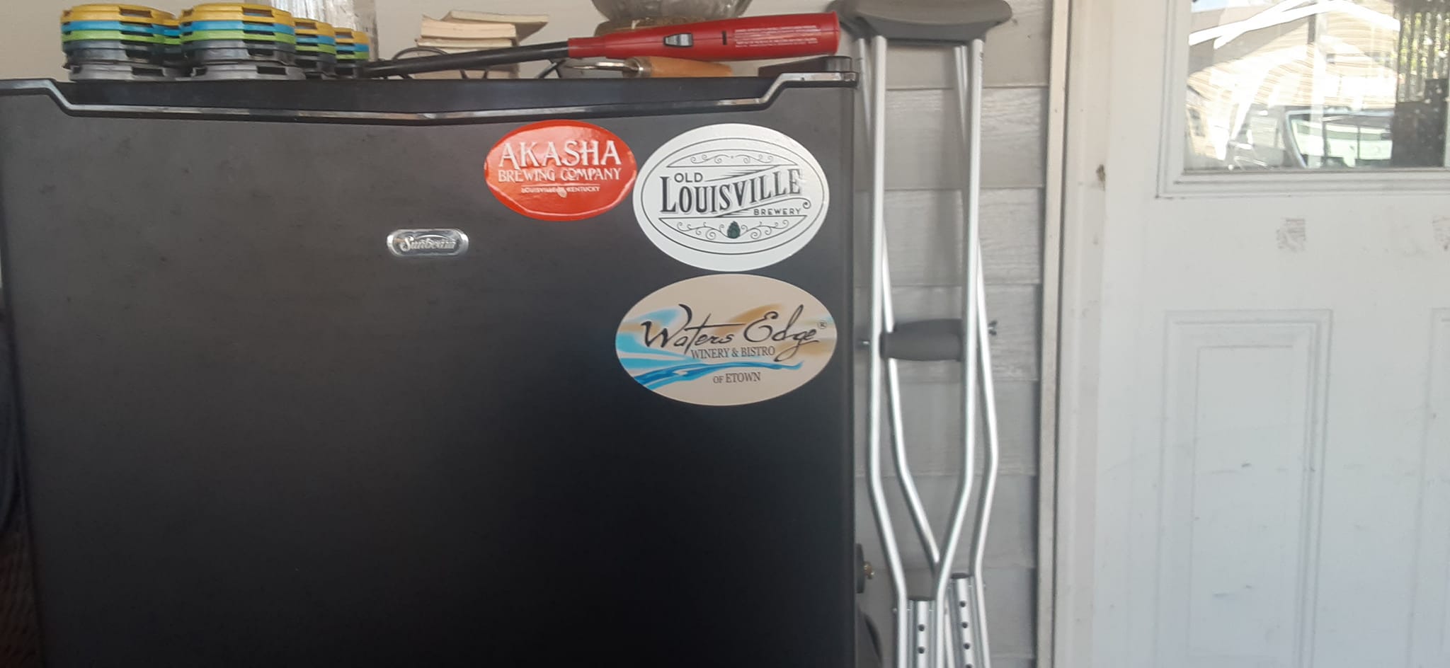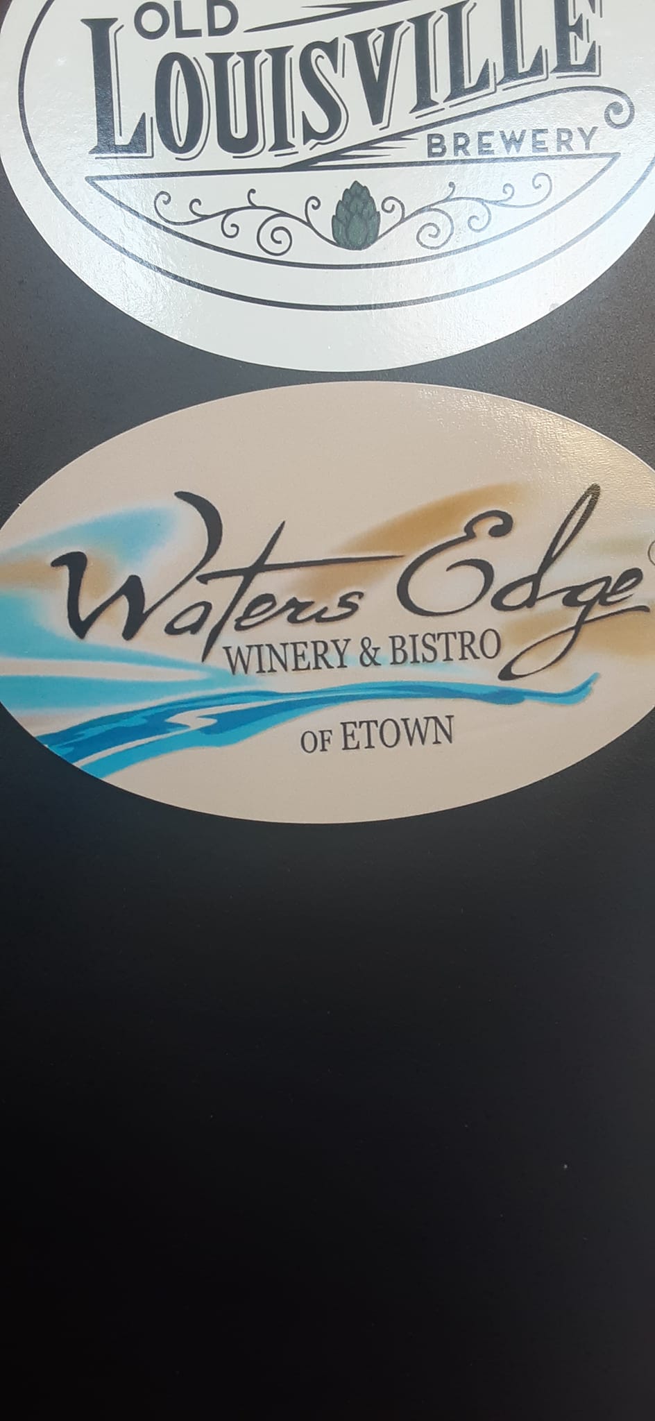 Added the first winery sticker the home beer fridge. Waters Edge Winery & Bistro of Etown. I know what you're thinking. Fine Wines and beer fridges may not exactly align but I think it's just divine.